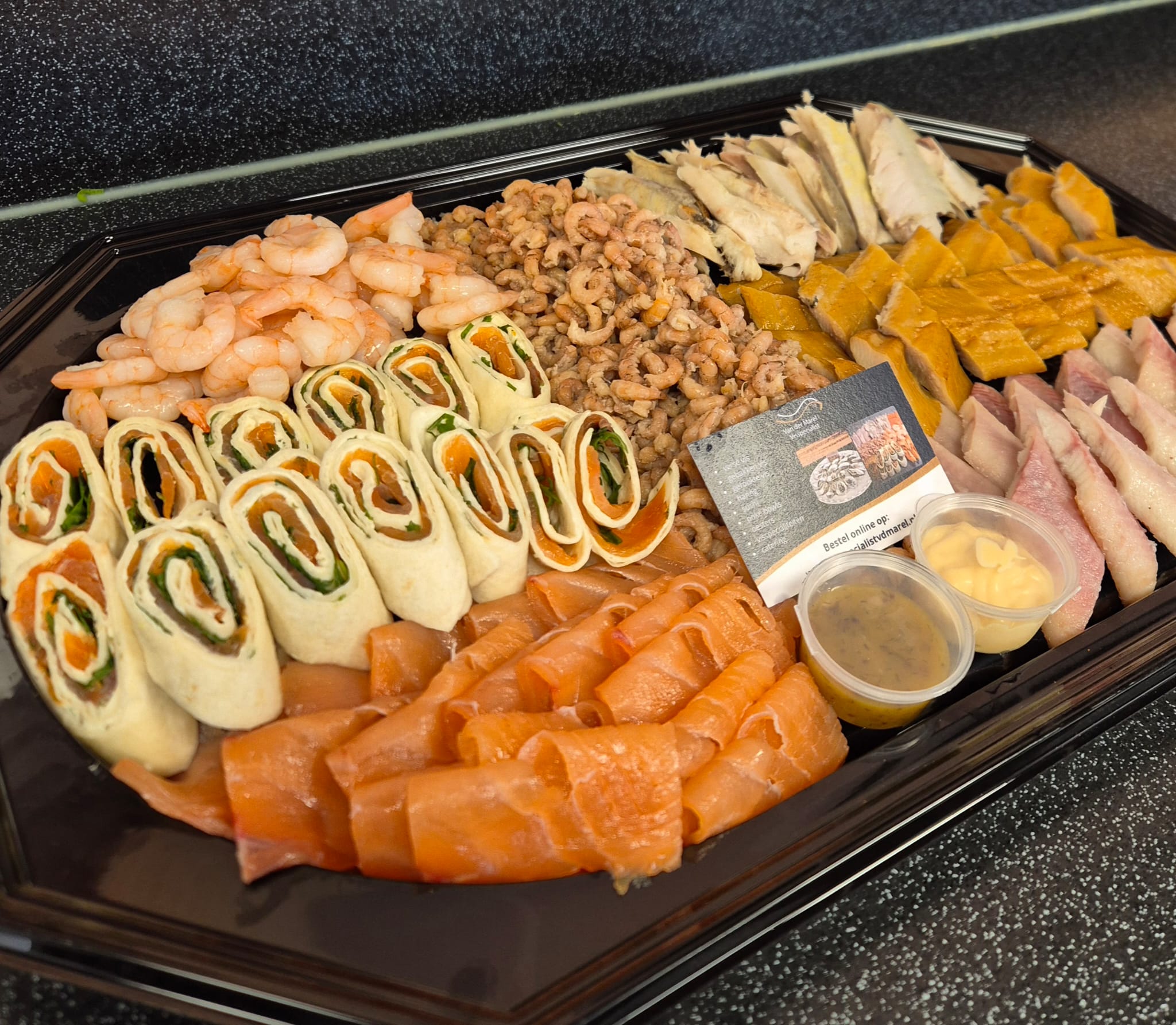 Luxe visschotels met een selectie van de mooiste vissoorten, waaronder zalm, garnalen, paling en tonijn. Perfect gepresenteerd voor uw feest of evenement. U heeft bij deze schotel de keuze uit: